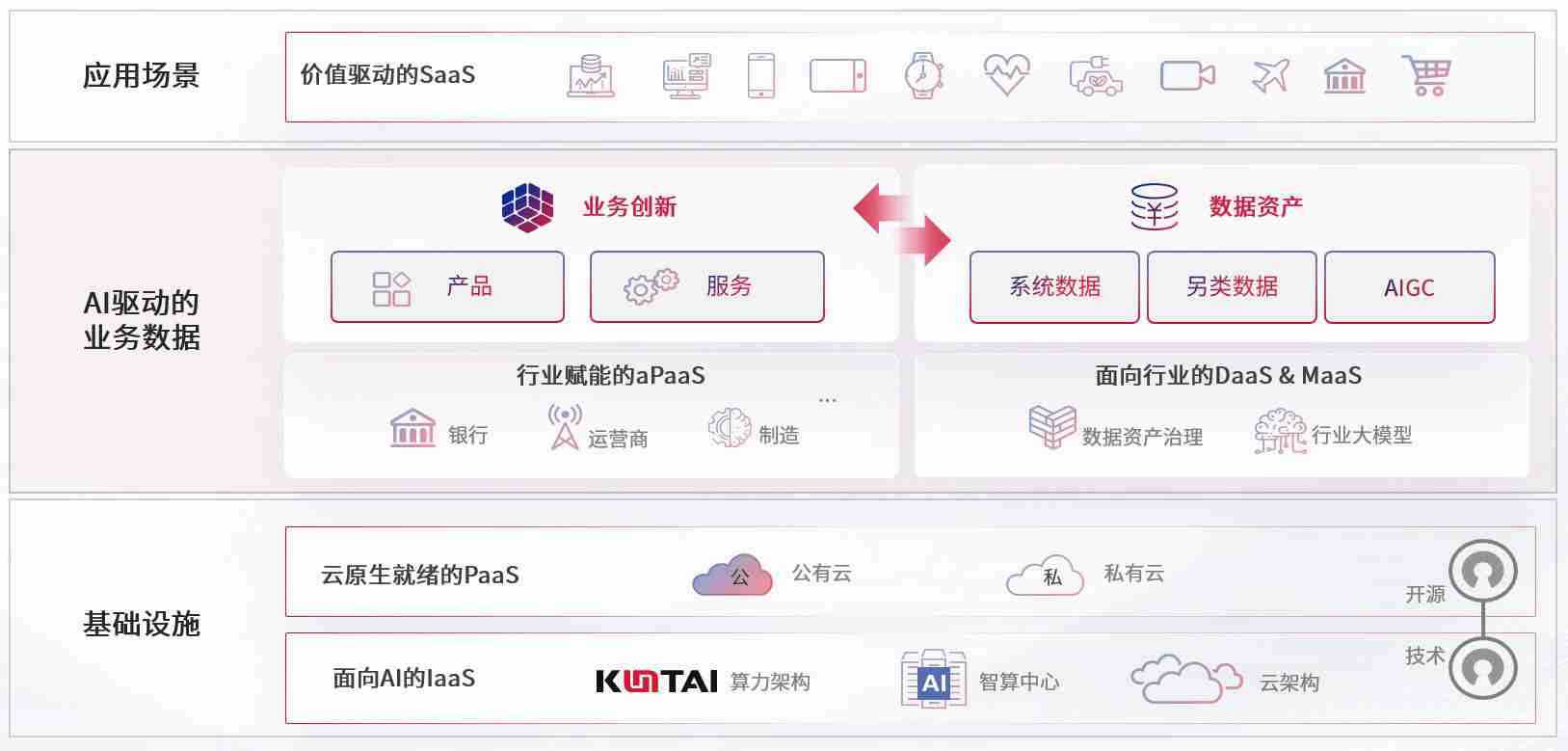 数字时代,,围绕企业数字化转型的关键要素,,,,z6com尊龙数码开创性的提出数云融合战略和技术体系框架,,着力在云原生、、数字原生、、、AI原生和信创产业上架构产品和服务能力,,,,为处在不同数字化转型阶段的快消零售、、、、汽车、、、、金融、、、、医疗、、、政企、、、教育、、、、运营商等行业客户提供泛在的敏捷IT能力和融合的数据驱动能力,,,构建跨界融合创新的数字业务场景和新业务模式,,助力企业级客户建立面向未来的核心能力和竞争优势,,,,全面推动社会的数字化、、、智能化转型升级。。。